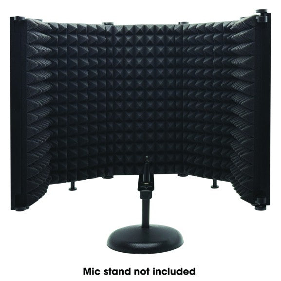 The Acousti-Shield AS12 is a desk or stand-mounted acoustical shield which can substantially reduce unwanted reflections, echo flutter and environmental acoustic interference. Constructed of 5mm high-density ABS and 41mm high density acoustic foam, and features a unique folding 5-panel design. The AS12 was developed as an effective accessory for the audio recording professional. When effectively utilized, it can substantially reduce unwanted reflections, echo, and unwanted environmental acoustic interference. The adjustable clamp fits securely to most microphones - for easy, flexible placement.