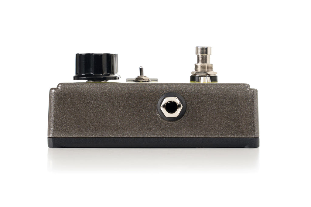 The 250-50th features the same Gain and Level controls with the original potentiometer values and tapers providing the familiar control knob feel and range that users have come to expect. Additionally, this limited-edition overdrive includes a 3-position toggle switch that not only delivers the traditional stock “SILICON” mode faithfully replicating the original sound, but also includes two additional modes for unexpected versatility! The “Ge/ASYM” mode provides an entirely different asymmetrical even-harmonic distortion characteristic made possible by employing a vintage Germanium diode. The third toggle selection is a “LIFT” mode which eliminates diode clipping entirely from the signal path, providing the ability to have a clean boost, or even a dirty boost as you clip the vintage LM741 opamp at higher gain settings. This limited-edition model has a striking new industrial design with its metal flake gray finish and bright yellow silkscreen hearkening back to the vintage gray and yellow color scheme of the original yet providing an updated look and feel that is right at home within the current DOD pedal lineup. As an added touch and attention to aesthetic detail, the wavelength of the neon yellow-green status LED was carefully selected to match the silkscreen color. Adorned with a beautiful etched aluminum commemorative 50th Anniversary badge, this pedal is not only destined to become an instant classic and collector’s item in the historic DOD lineup but will assume its rightful place in the entire pedal universe!