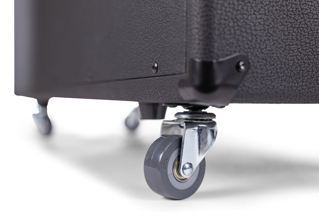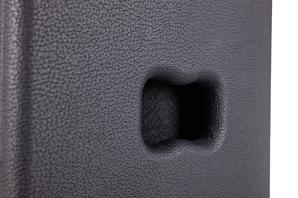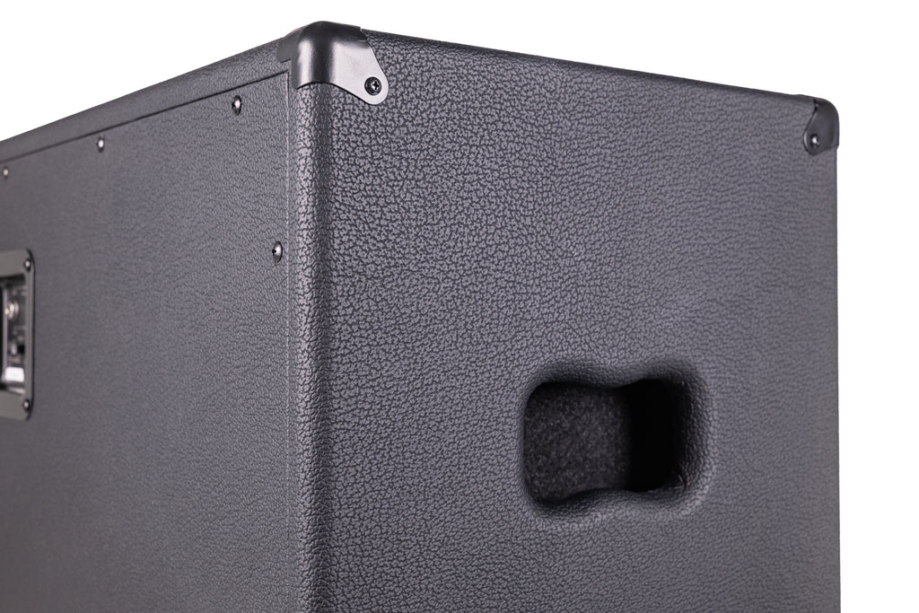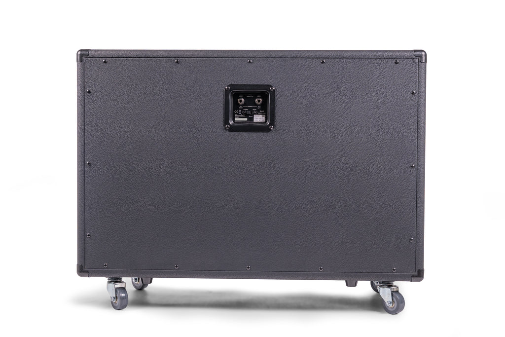 2 x12 angled baffle front loaded straight speaker cabinet with heavy duty steel grill and tuned center port. Casters included. 8Ω