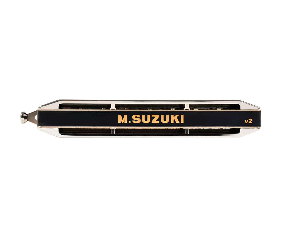 16 hole, 64 note (c-d4) chromatic harmonica. Brass and chrome plating cover, with an ABS body. Long stroke slide action. Includes an ABS case.